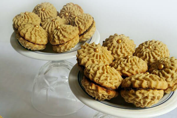 ابتدا کره نرم و کره پسته را خوب میزنیم تا کاملاً پوک و سفید شود. در ظرف دیگر گلاب و شیر و هل و پودر شکر و تخممرغ را در حد هم زدن میزنیم. آرد و نشاسته ذرت را الک میکنیم و به روغن اضافه میکنیم، ۱۰ دقیقه با همزن میزنیم تا پوک شود. حالا موادی را که مخلوط کردیم کمکم به آرد و روغن اضافه میکنیم و خوب هم میزنیم تا پفکی شود. مواد نباید در مجاورت هوا باشد چون خنک و سفت میشود. سریع داخل قیف میریزیم و با ماسوره شکوفه گل میزنیم. سینی را ۲۰ دقیقه درون یخچال قرار داده سپس در فر از قبل گرم شده با درجهی ۱۷۰ تا وقتیکه زیر شیرینی تغییر رنگ بدهد حدود ۱۰ تا ۱۵ دقیقه قرار میدهیم